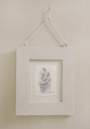 Calla is our minimalist muse — clean lines, soft edges, and a serene presence that lets texture and tone quietly lead. Each frame is shaped by hand in papier mâché, giving it the subtle irregularity that makes handcrafted pieces so special. Complete with a Maggie Matthews charcoal sketch, Calla offers a balance of simplicity and soul, ready to hold whatever story you choose to place within. Perfect on her own or paired with others from the collection for a beautifully composed wall.